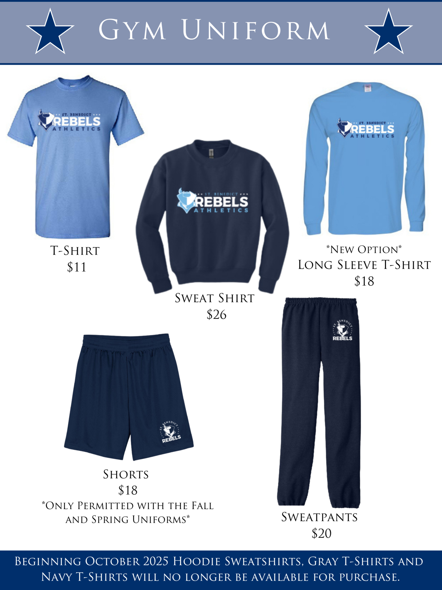 | Note: Spirit Items are not part of the school Gym Uniform. | ||